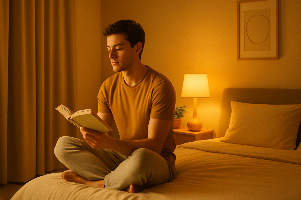 - Ganti waktu layar dengan aktivitas santai seperti membaca buku atau meditasi ringan.